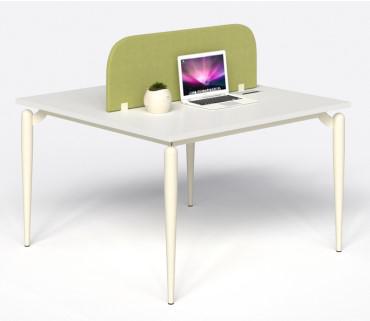 Bàn nhân viên cụm đôi chân sắt ống chỏm cầu tóp côn sơn đen sần hoặc kem, thanh giằng hộp 25x50.  Mặt bàn gỗ MFC dày 25mm chống xước, chống cong vênh, mối mọt.