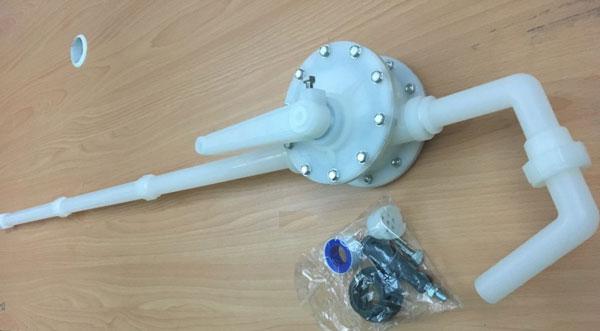 Lắp ráp: Lắp các đoạn ống dẫn (ống hút) lại với nhau sao cho chiều dài phù hợp với độ sâu của thùng phuy. Vặn chặt các khớp nối để tránh lọt khí (nếu lọt khí bơm sẽ không lên nước).