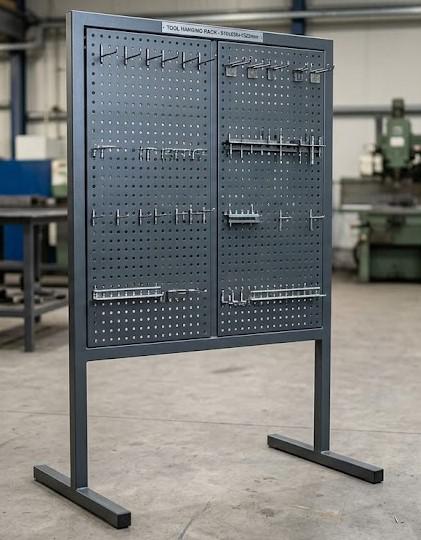 Đa năng: Ngoài treo cờ lê, kìm, mỏ lết, giá còn có thể tích hợp thêm các kệ nhỏ để chứa chai xịt vệ sinh, hộp đựng mũi khoan hoặc bản vẽ kỹ thuật.