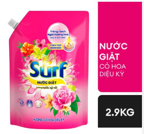 Nước giặt Surf  2.9kg là sản phẩm nước giặt đậm đặc cao cấp của Unilever, đóng can tiện lợi dung tích lớn tiết kiệm chi phí giặt giũ hàng ngày