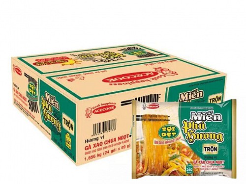 Miến Phú Hương thịt bằm 55g là sản phẩm miến ăn liền tiện lợi, được chế biến từ tinh bột khoai tây, tinh bột đậu xanh hà lan và thịt heo bằm thơm ngon. Sợi miến dai, trong suốt, kết hợp cùng nước dùng đậm đà hương vị thịt bằm mang lại bữa ăn nhanh, ngon miệng và đầy dinh dưỡng. Mỗi gói miến cung cấp khoảng 199 kcal, giàu tinh bột và protein.